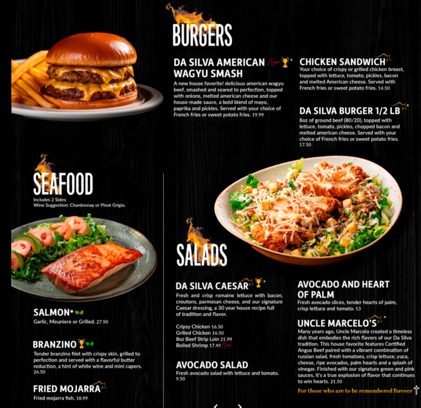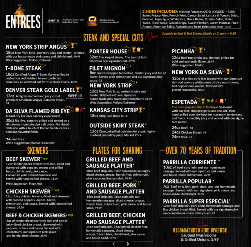 Welcome to Da Silva Steakhouse, one of Orlando’s top destinations for authentic Brazilian-style dining. Known for its rich flavors and high-quality cuts of meat, the Da Silva Steakhouse Restaurant menu offers a wide selection of grilled steaks, traditional Brazilian dishes, fresh salads, and buffet-style options. Whether you’re visiting for a casual meal or a special occasion, the restaurant delivers a unique churrascaria experience with expertly seasoned meats and a welcoming atmosphere. Explore the full menu to find signature dishes, pricing details, and everything you need to plan your visit.